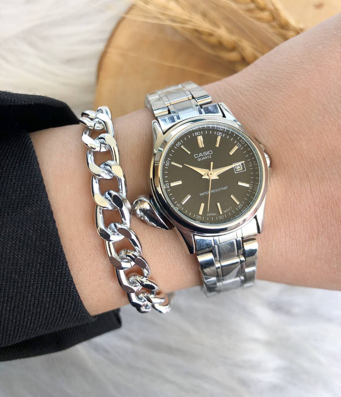 ساعت کاسیو زنانه + دستبند زنجیری نقرهای – ترکیب شیک و خاص شناسه: #369199