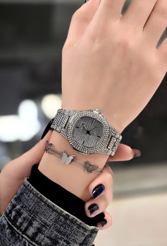 ست_ساعت و دستبند الینا فول نگین دستبند استیل رنگ ثابت