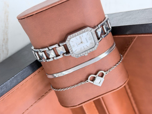 ساعت زنانه دستبند کارتیر و حلقه استیل رنگ ثابت