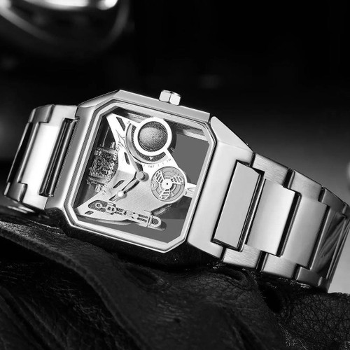 ساعت مردانه ناسا یک مکعب خاص صفحه نمایشی قفل کلیپسی ثانیه شمار چرخشی متفاوت موتور نمایان بند استیل