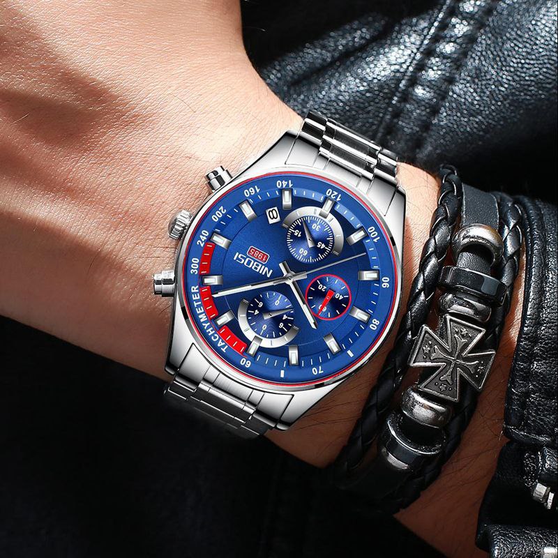 ساعت مردانه Nibosi سه موتوره فعال برند نیبوسی اورجینال قطر ۴۴ میلی متر رنگ ثابت ضدآب