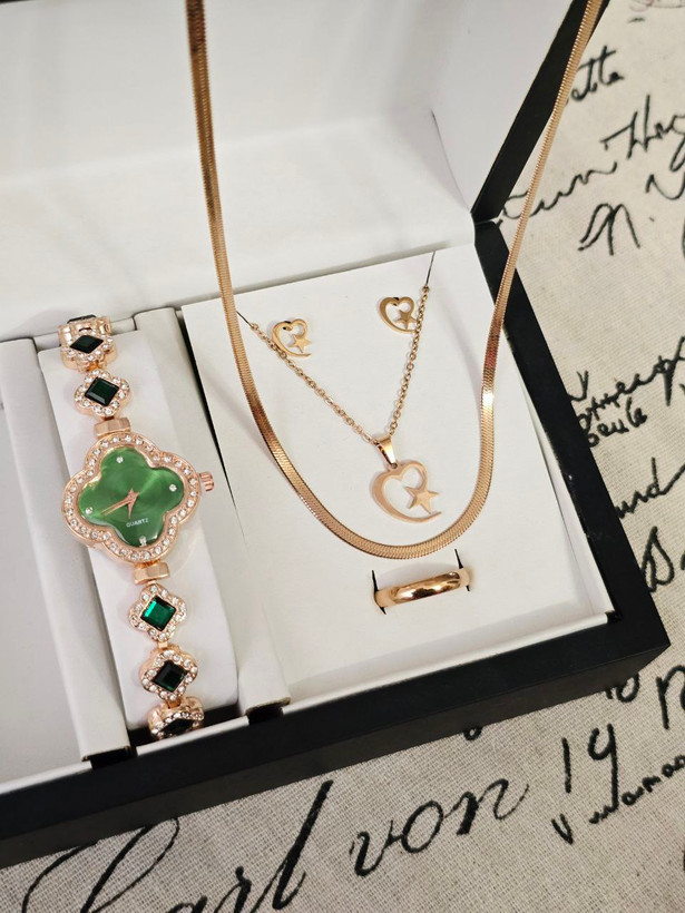 ست زنانه و دخترانه ساعت ونکلیف  و نیمست استیل  و حلقه بهمراه جعبه کادویی و باتری یدکی