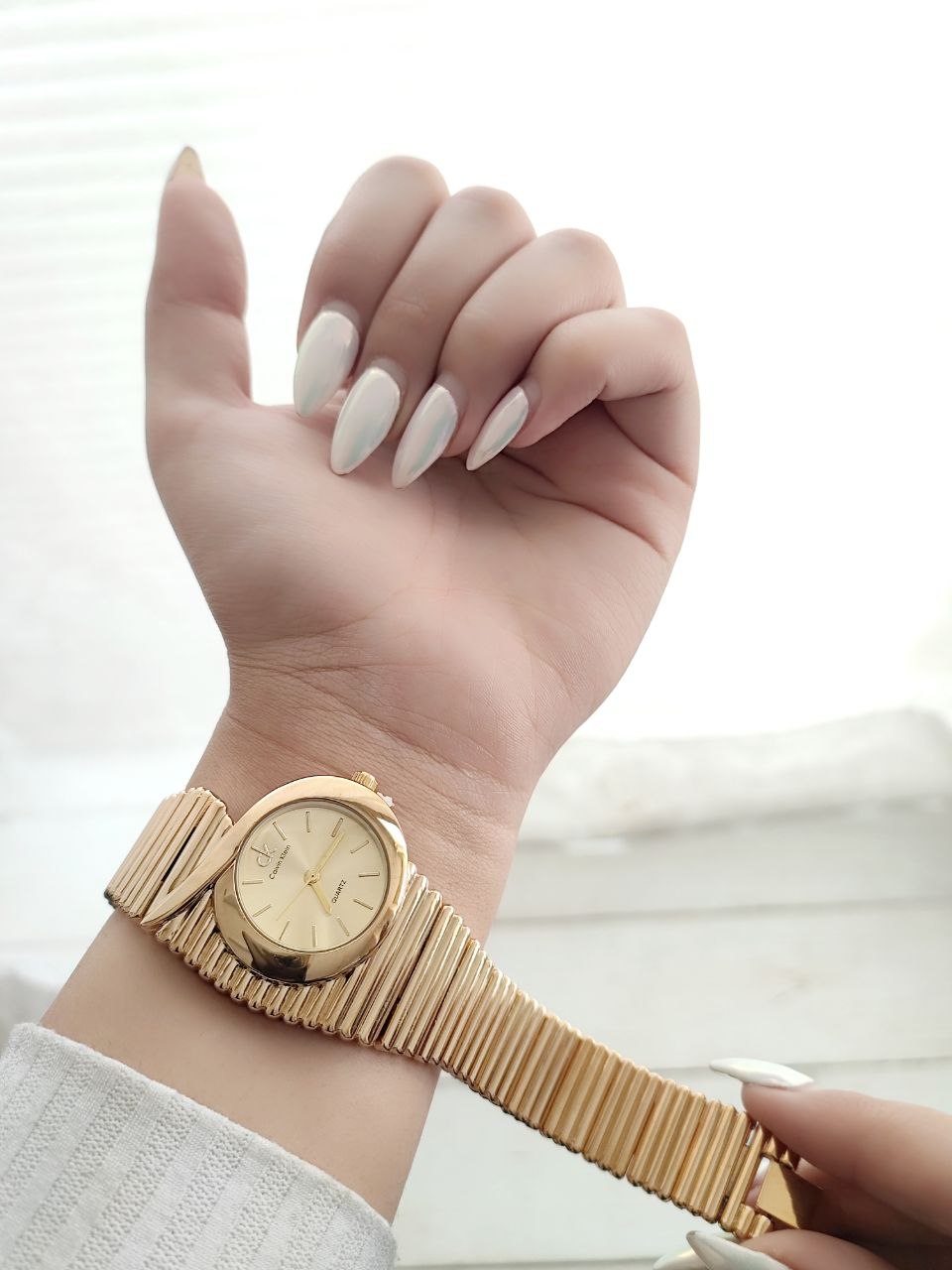 ساعت زنانه مارک ck 8509002991 طراحی شیک با بند فلزی طلایی و صفحه متنوع رنگی