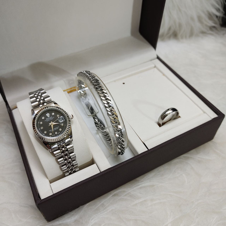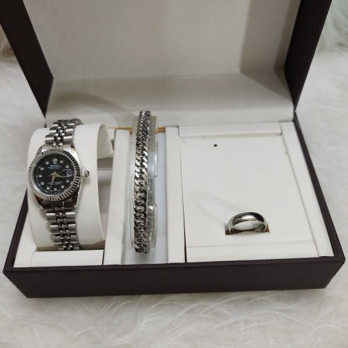 ست ساعت، دستبند و حلقه استیل زنانه رولکس شناسه: #369333