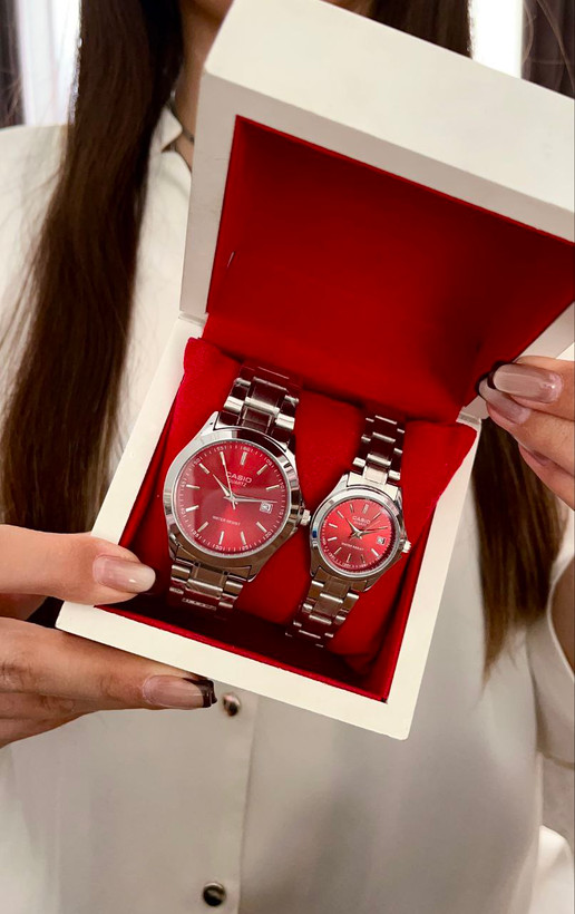 ست ساعت زنانه و مردانه قفل کلیپسی کیفیت سفارشی دارای روز شمار مقاوم دربرابر آب بند استیل موتور کوارتز رنگ سیلور خاص کلاسیک