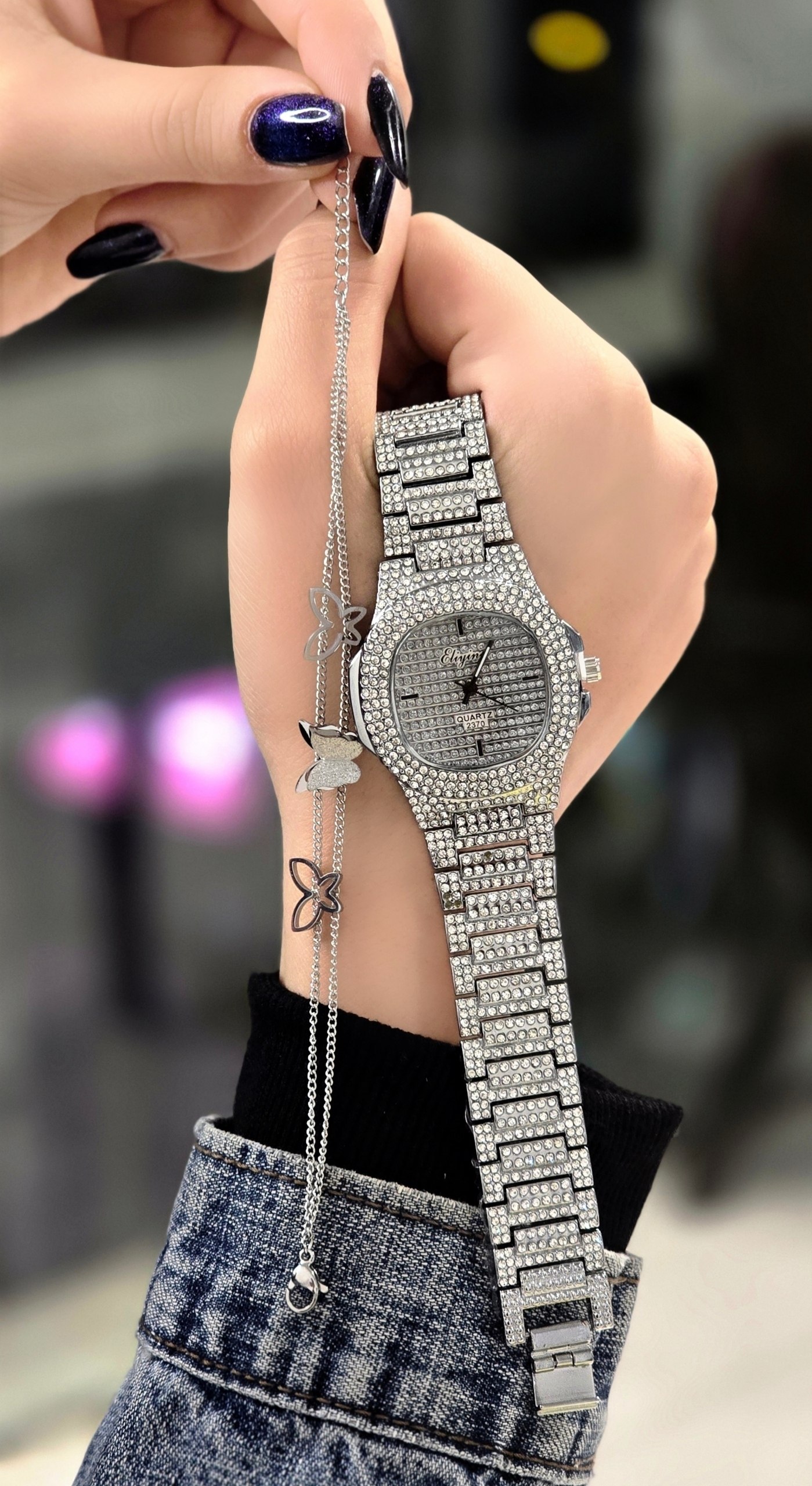 ست_ساعت و دستبند الینا فول نگین دستبند استیل رنگ ثابت
