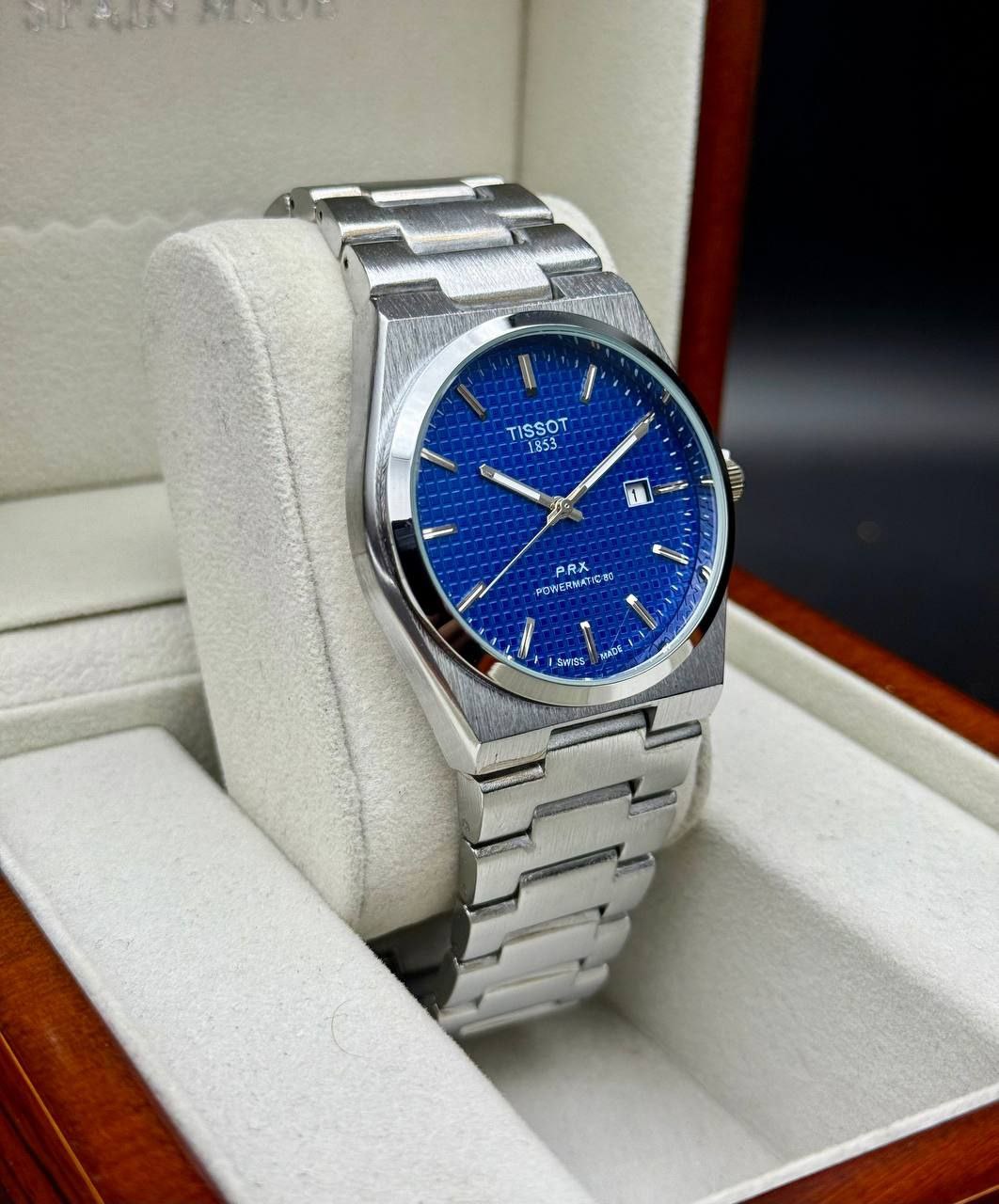 ساعت مردانه برند تیسوت موتور درجه یک دارای تقویم قاب و بند تمام استیل قفل کلیپسی مخفی ضامن دار