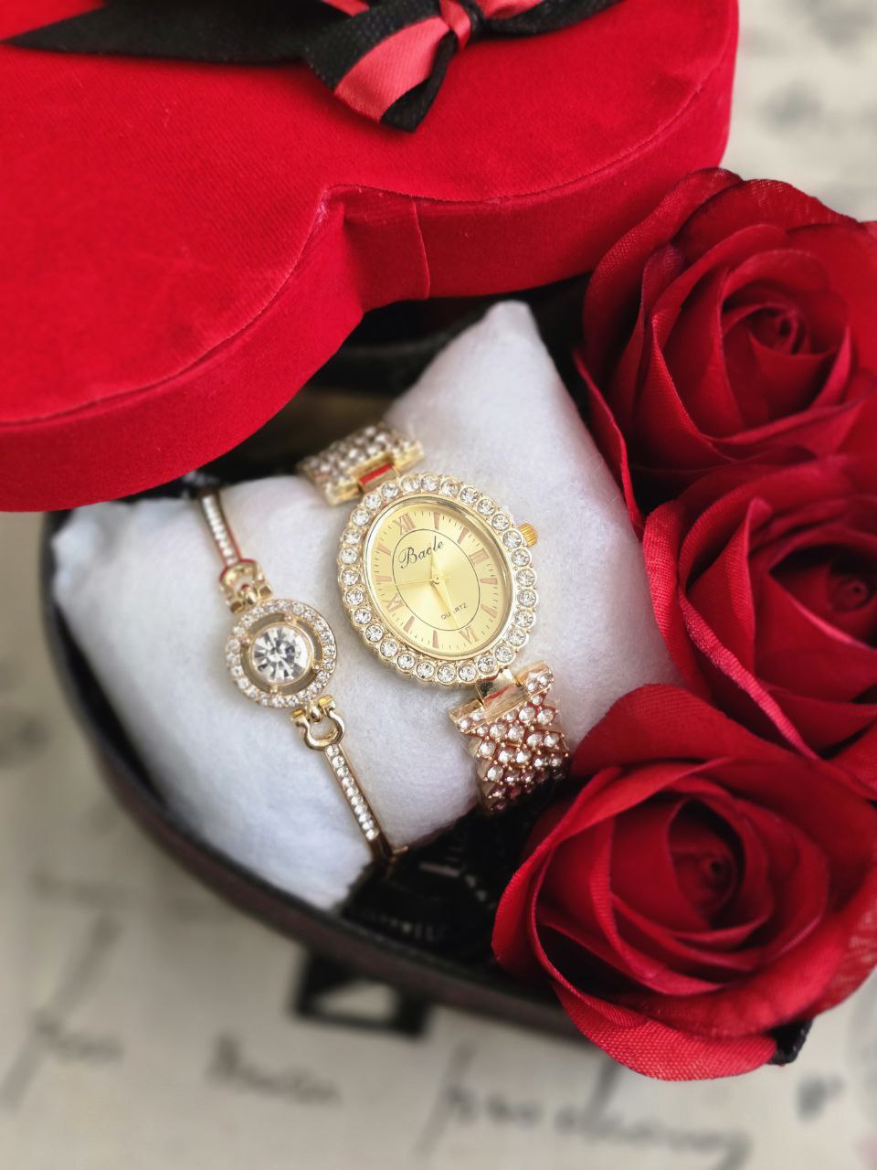 باکس هدیه شیک زنانه و دخترانه به همراه ساعت و دستبند و باکس و گل