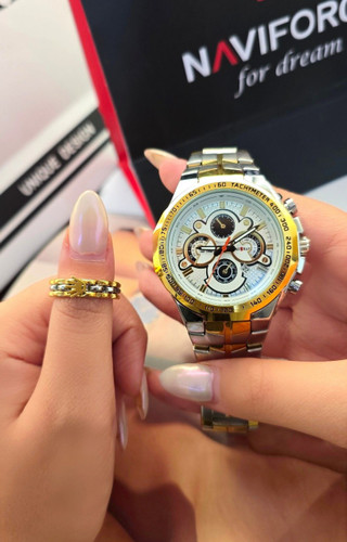ساعت زنانه برند نایدو بند استیل بهمراه دستبند و جعبه و باتری یدکی