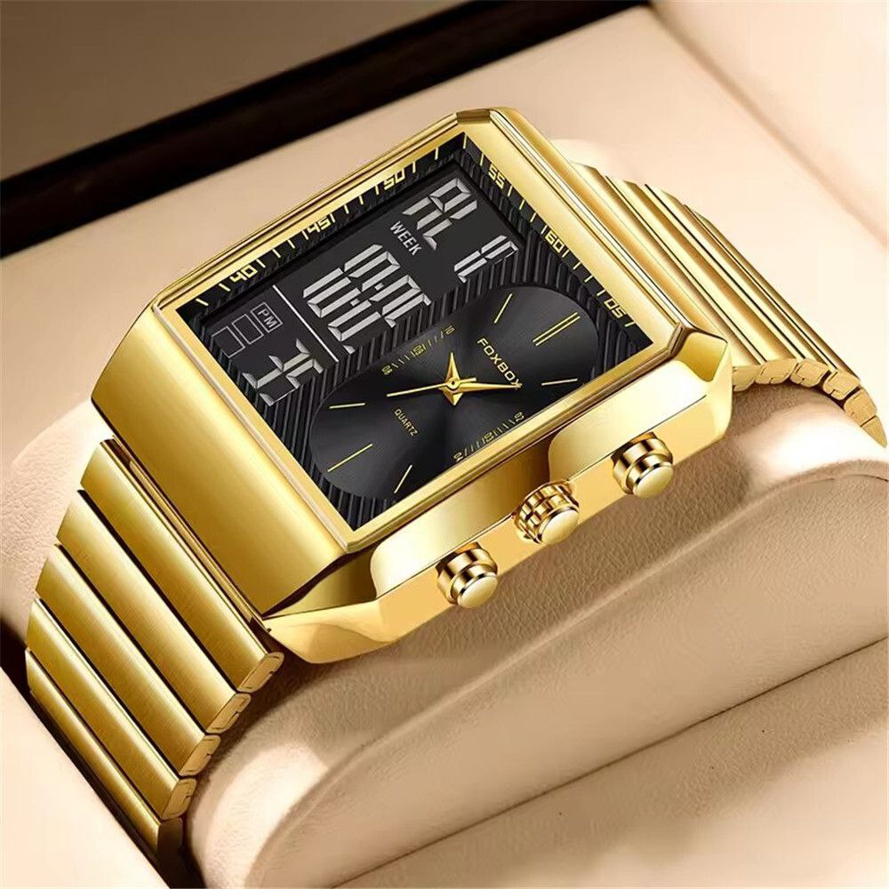 ناموجودساعت فاکس باکس دو زمانه نمایش روز شماره و ایام هفته کرنومتر بک لایت قوی شیشه باداوم ضدآب تنظیم زنگ هشدار ( آلارم )