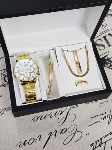 ست ساعت فلزی مارک سیتیزن 4504805265 طرح سه موتوره تقویم دار قفل ضامن دار
