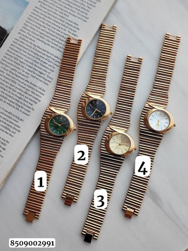 ساعت فلزی زنانه مارک 8509005856 رنگ ثابت شیشه تراش دو قفله مخفی موتور با کیفیت قاب و بند استیل کیفیت بسیار خوب همراه با جعبه شیک
