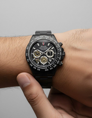 ساعت مردونه رولکس دیتونا کرنوگراف قاب کربنی قفل رولکسی( دو قفل ) بنداستیل دارای روزشمار شیشه کریستال تاچیمتر